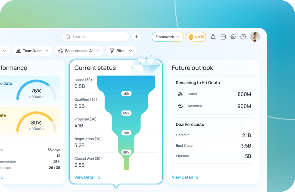 Give your team the tools to drive their own growth. Personal dashboards and transparent tracking inspire self-motivation, turning every member into the “CEO” of their own targets.